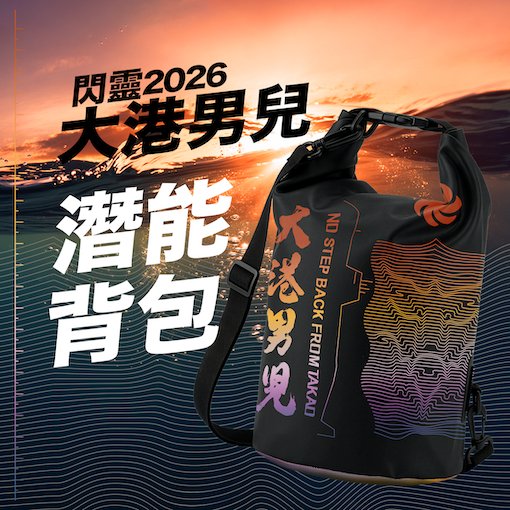 閃靈《大港男兒》潛能背包,融和潛艇的元件與圖素,搭配閃靈TAKAO歌詞,以及閃靈logo隱藏在波紋中,毫不退縮的使命,我們在大港相見。